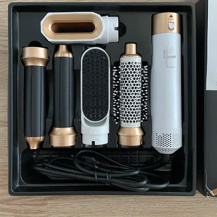 Com a Escova Secadora 5 em 1, você seca, alisa, modela, cacheia e dá volume — tudo com um único aparelho!